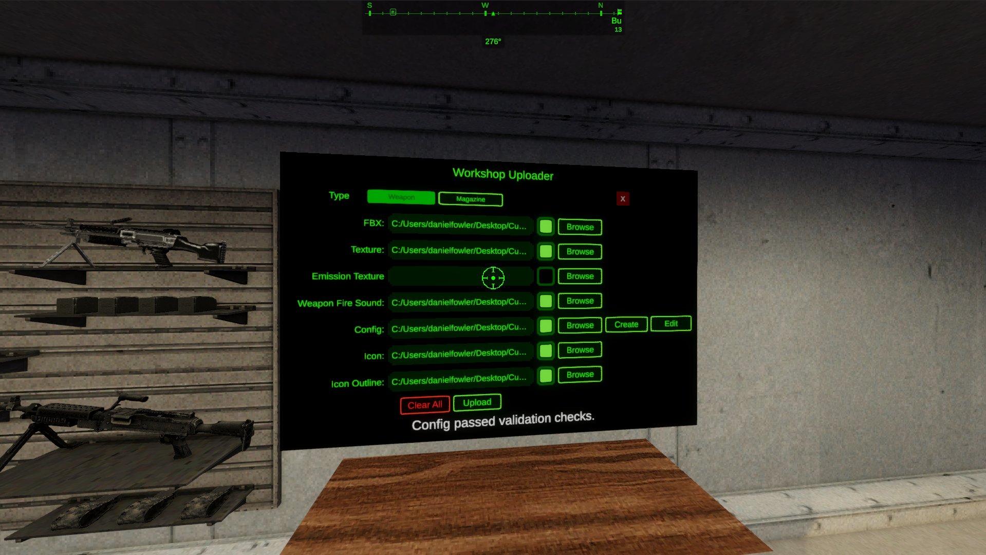 Emission Texture - Select the weapon models emission texture. This is optional. Only upload an emission texture if you are using one.