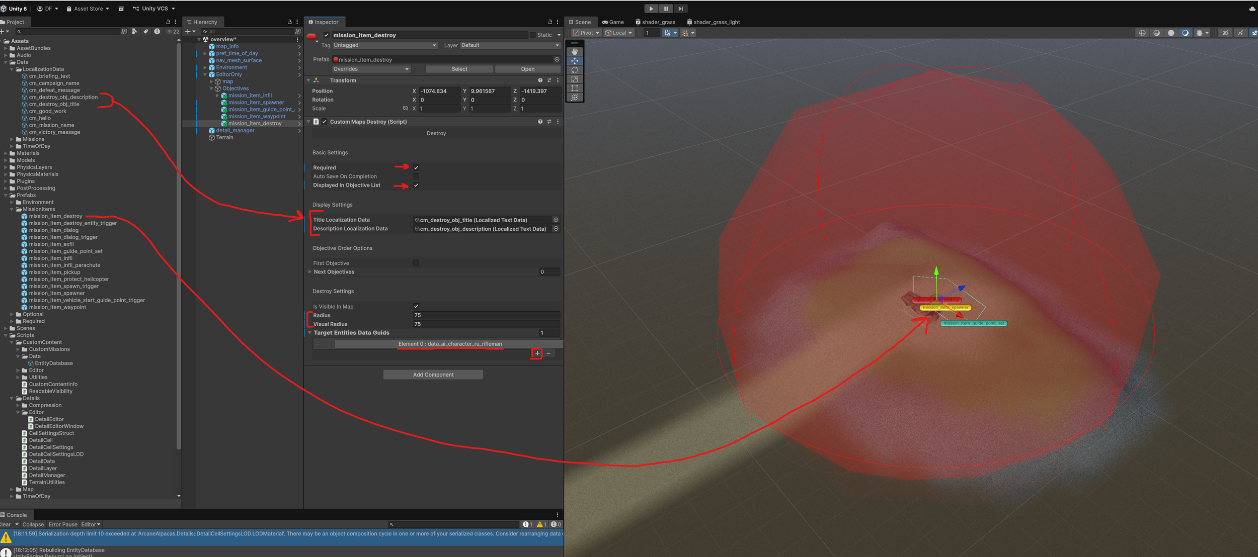 Now we’ll cover the basics of building a mission. Missions are made up of a few different objects; mission items, objectives, and triggers. All are hooked up in a visual way in the scene to make it a bit easier.