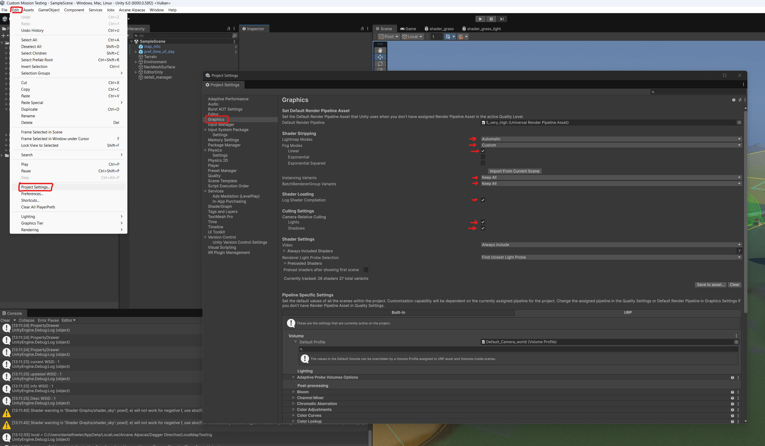 8: Unfortunately there are a few settings that must be done manually. Open the Graphics Settings menu, Edit<Project Settings, then select the “Graphics” tab.