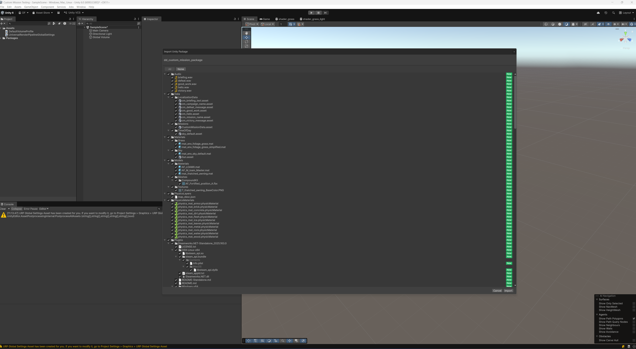 Double clicking the package will open the import window. Click “Import” in the bottom right. It may take a few minutes for the import to finish.