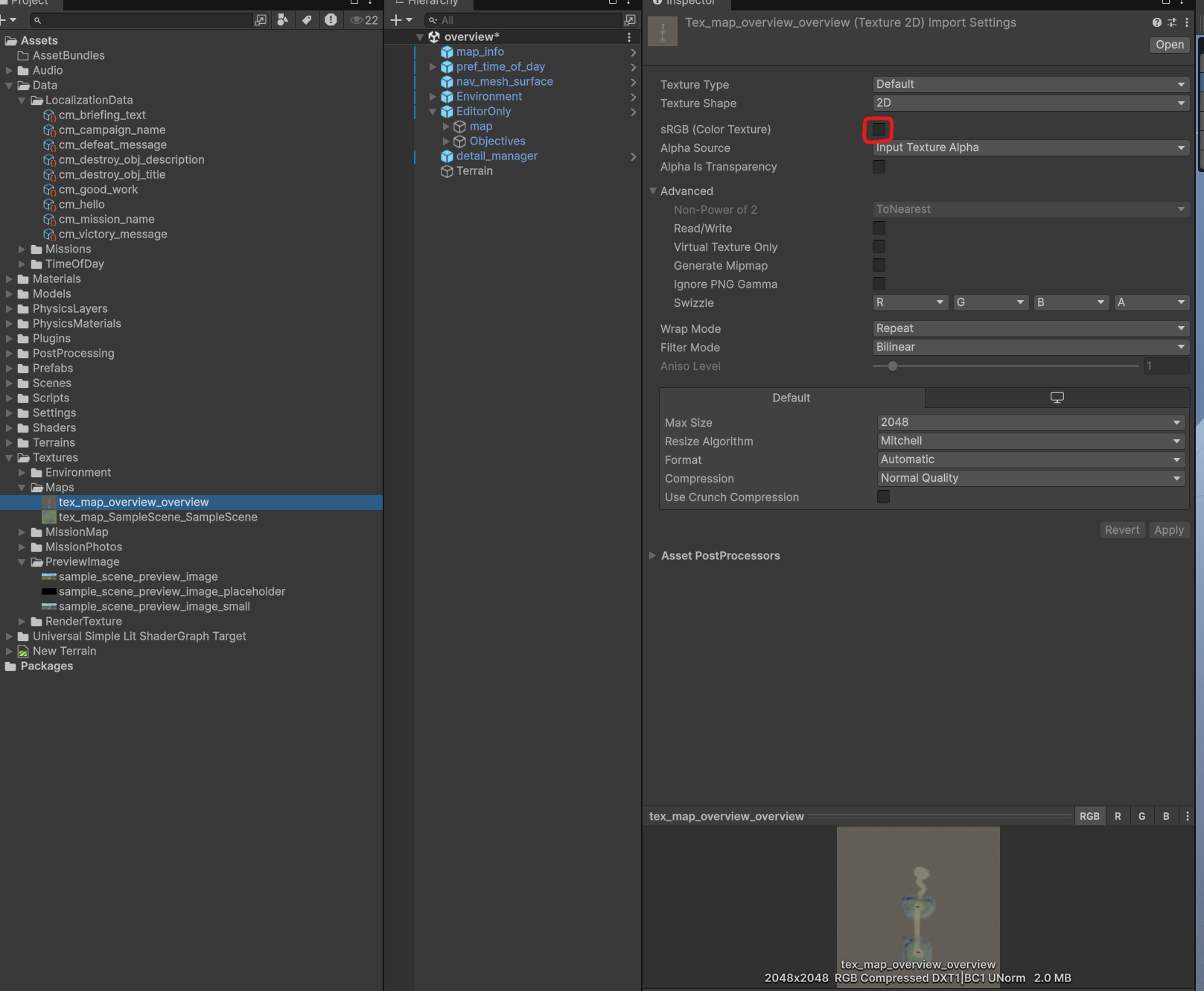 If the map is too dark you can select the map image and disable “sRGB (Color Texture)”