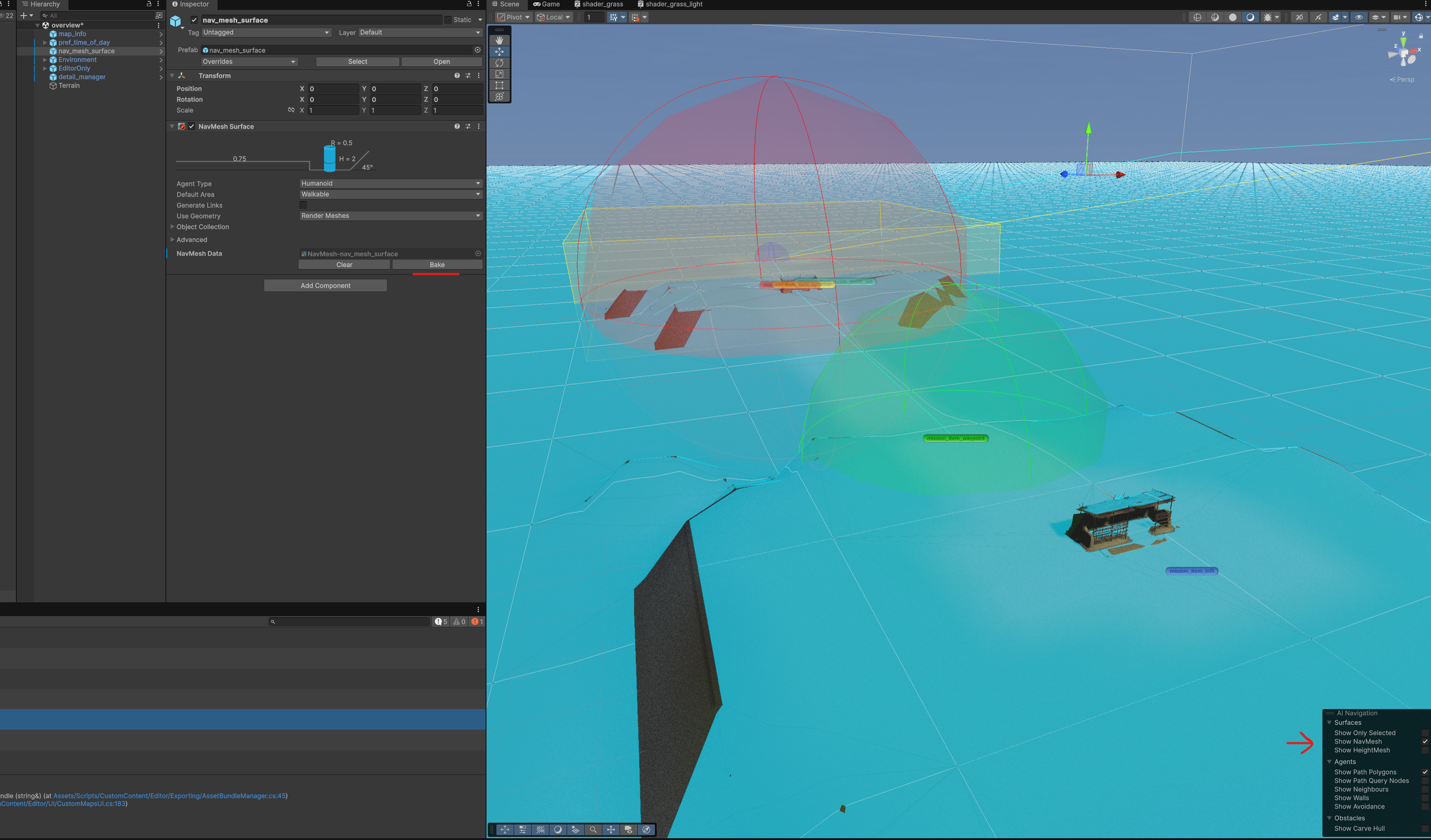 1: Select the “nav_mesh_surface” and click “Bake”.
